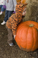 The pumpkin patch had a really wonderful hay ride and some goats that we fed and petted, we played with the pumpkins, jumped on hay stacks, went through the kiddie maze and were completely dirty and exhausted by the time we left! It was wonderful.